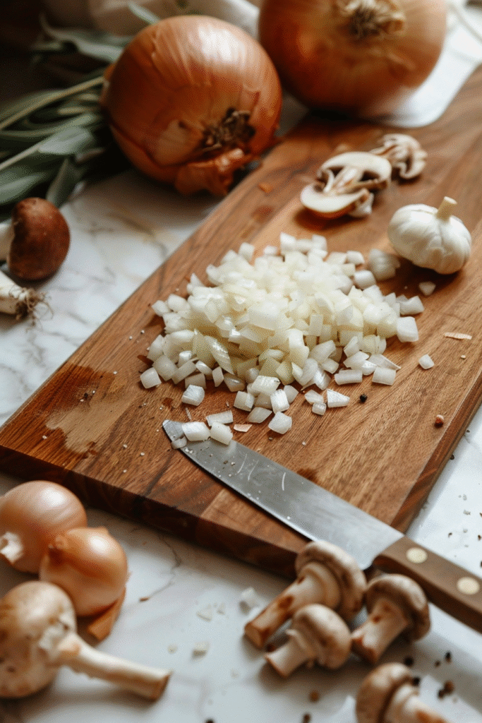 - Add the diced onion and cook until soft and translucent, about 3–4 minutes.