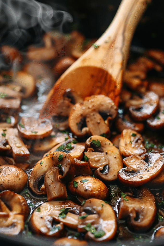 - Add the mushrooms and sauté until they release their moisture and become tender.