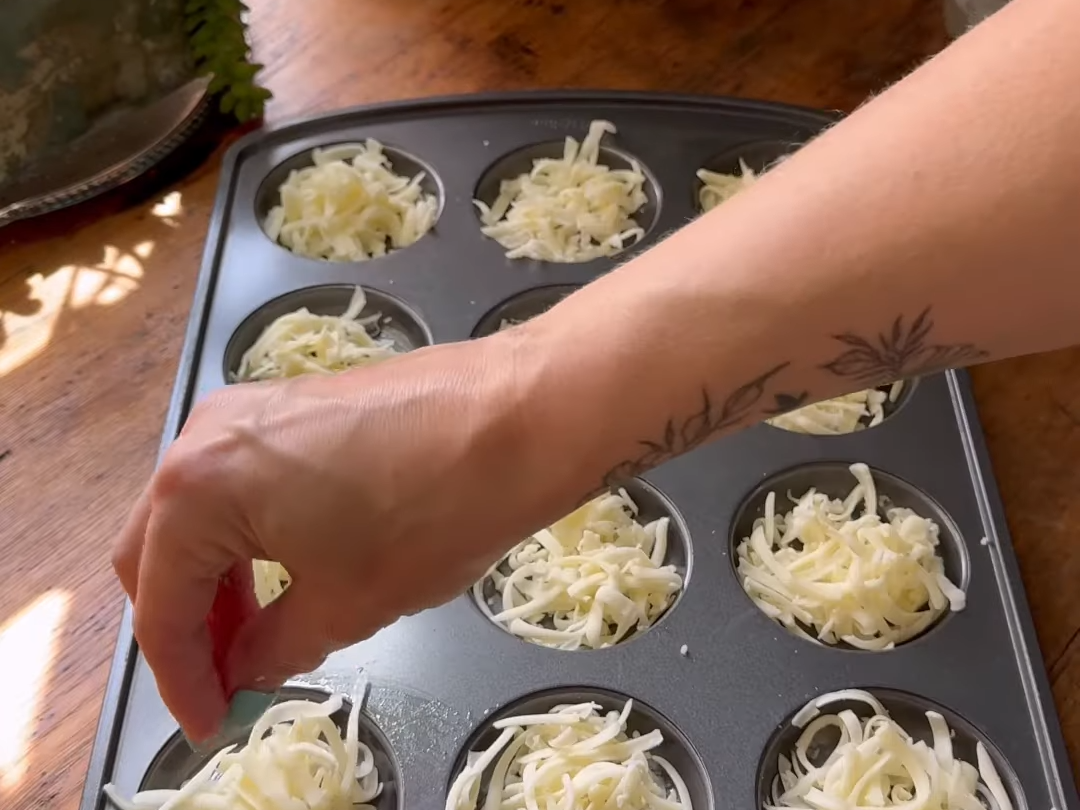 - Place small piles of mozzarella + parmesan on the baking sheet.