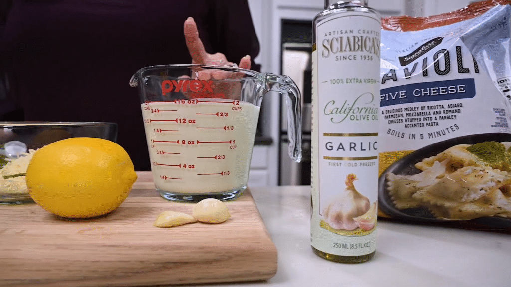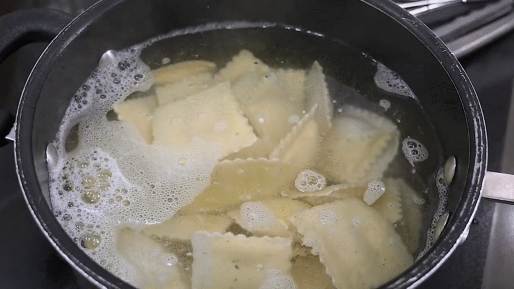 Start by cooking the ravioli. Bring a large pot of salted water to a gentle boil. Add the ravioli and cook according to the package instructions—fresh ravioli usually takes about 3–4 minutes, frozen about 5–7 minutes. Drain and set the ravioli aside, but save about ¼ cup of the pasta water in case you need to thin the sauce later.